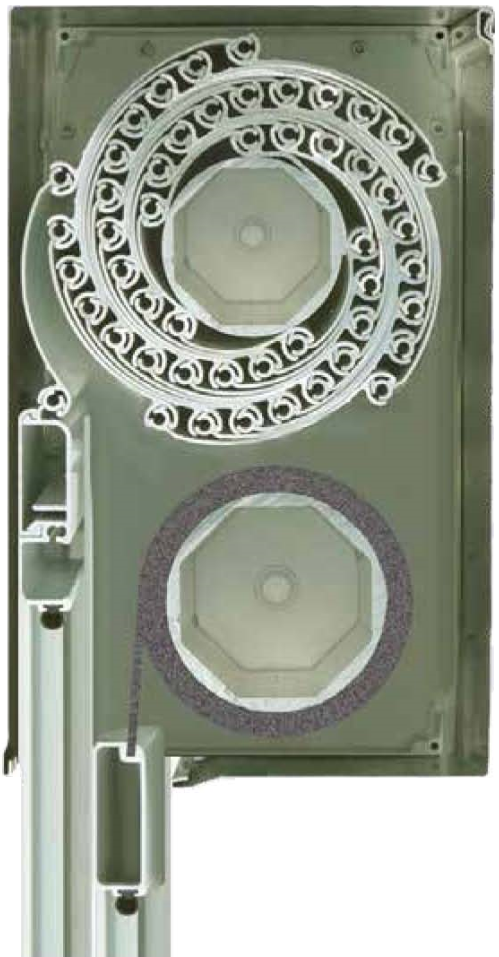 The nautilus design stacks the shutter louvers in a much more efficient manner which greatly reduces the size of the headrail housing. An average rolldown storm shutter that is 7 feet long would require a cassette as large as 11” by 11” to hold the shutter while retracted, the nautilus for a 12 foot long shutter would only require a 7” by 7” housing or less than half the size of the average. This can be motorized and can be programmed on a schedule, operated from your smart phone and configured to your home automation system. |